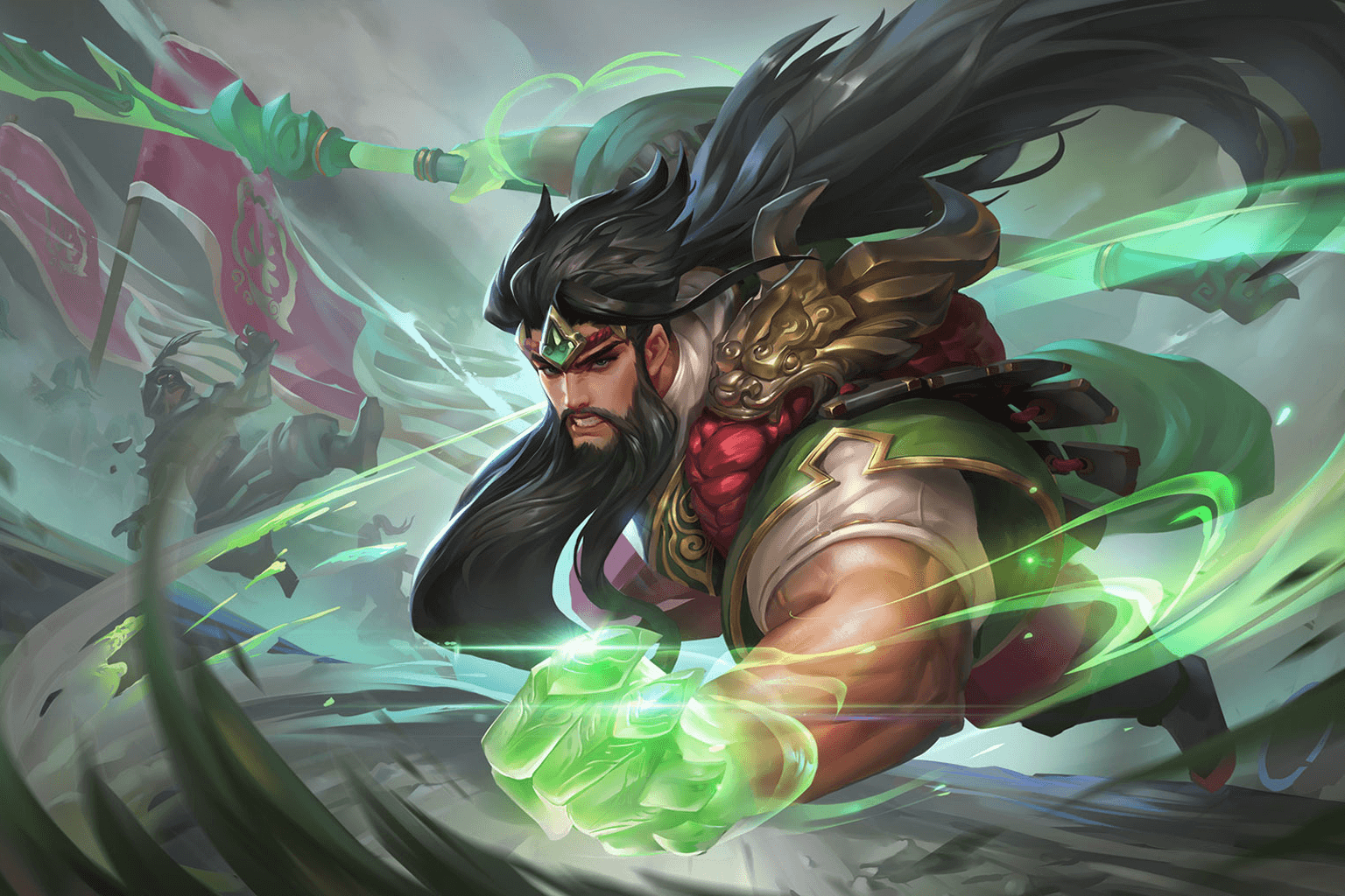 终极技【武圣降临】:召唤青龙虚影进行大范围AOE,对低血量敌人触发"斩首特效"